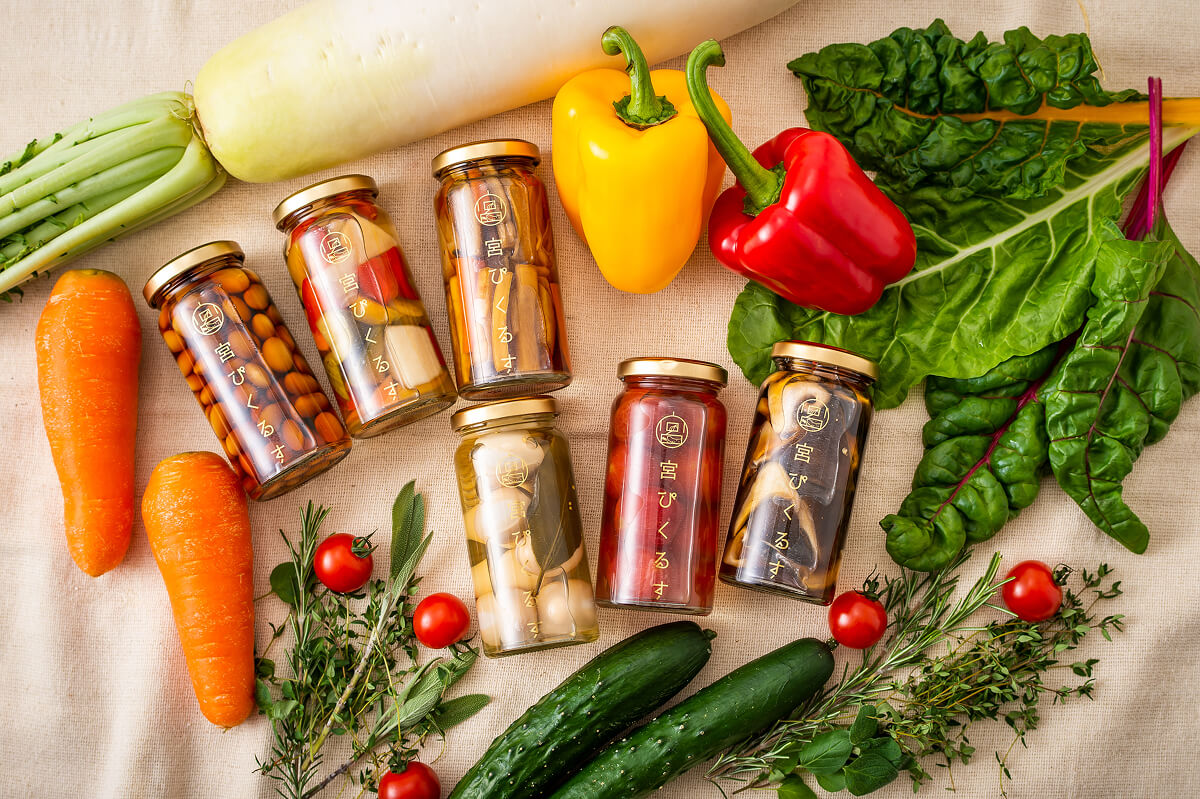 宇都宮の老舗酢蔵が手がける、まろやかな酸味の天然醸造酢を使用した、こだわりの地産ピクルスです。
