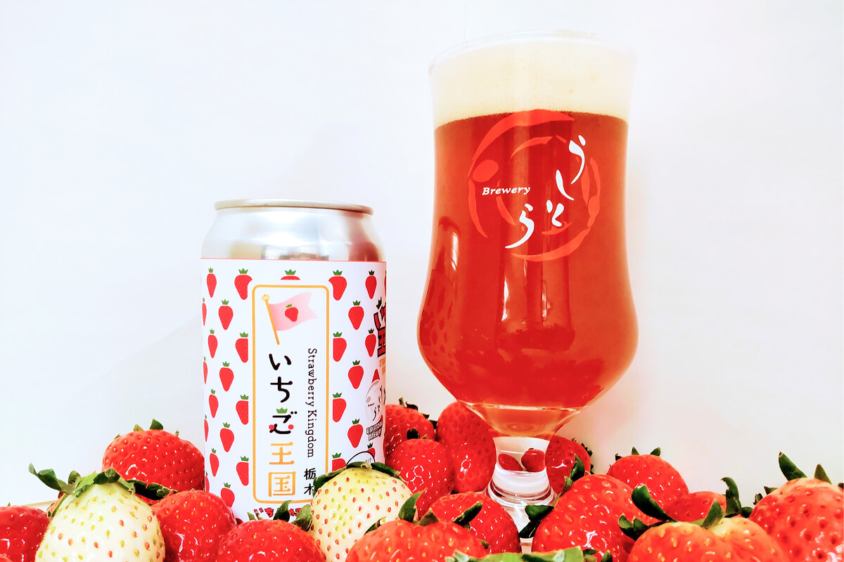 栃木県下野市産のいちごを贅沢に使用した個性豊かなクラフトビール「いちご王国 -Strawberry Kingdom-」。