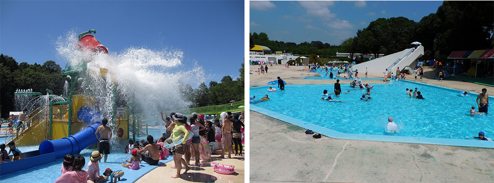 バケツがひっくりかえる仕掛けがある「じゃぶじゃぶ池」や「ちびっこプール」などお子様向けのプールも充実しています。県内最大のプールで一日中遊びませんか。