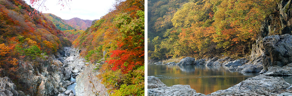 川治温泉と鬼怒川温泉の間およそ3kmに及ぶ「龍王峡」(日光市)。