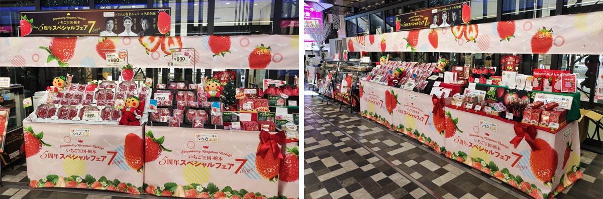 12月13日(水)~19日(火)にあべのハルカス近鉄本店(大阪市)2階催事場「ウエルカムガレリア」で『「いちご王国・栃木」クリスマス スペシャル7days』が開催されます。県産いちごやいちごを使ったスイーツ、加工品等いちごづくしのフェアです。ぜひ、お立ち寄りください。