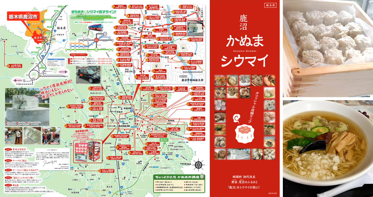 市内には、70軒を超える個性豊かな「かぬまシウマイ」が食べられるお店や、関連グッズを購入できるお店があります。オリジナルマップを片手に、あつあつジューシーで美味しいシウマイを召し上がれ~。