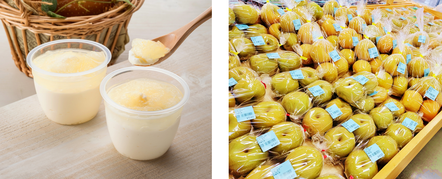 梨サイダーや梨ゼリーなど、梨の加工品もたくさん販売されます。