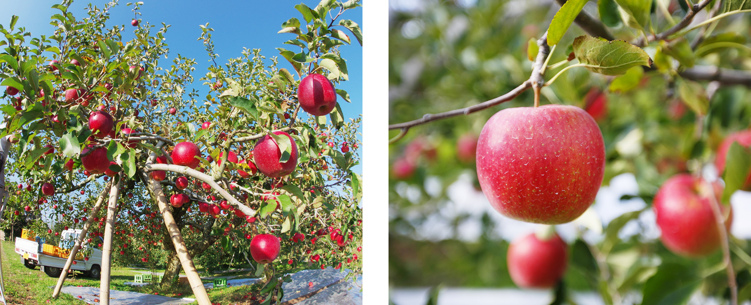 矢板のりんごは樹の上で収穫する“樹上完熟"が特徴で、新品種の秋映をはじめ複数種のりんごが楽しめます。