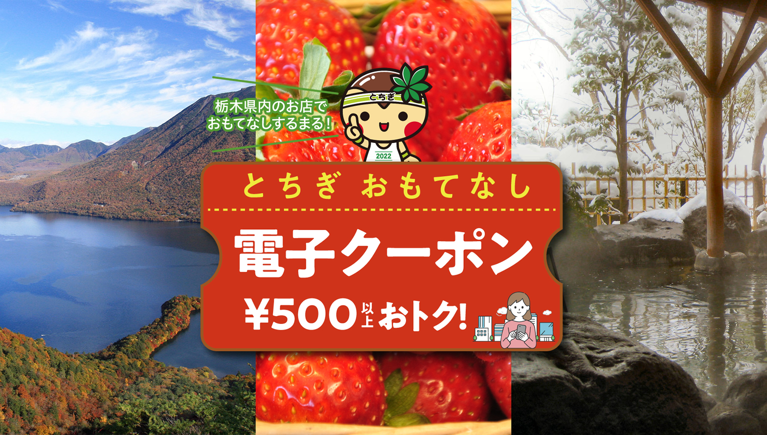 栃木県では、両大会開催を契機に来県される県外の方々へのおもてなしの気持ちを込め、県内の飲食店や施設等で利用できる電子クーポンを発行します。