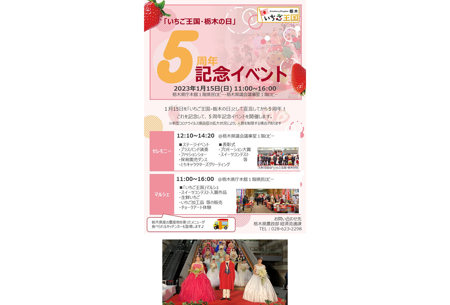 1月15日には「いちご王国・栃木の日」を宣言してから5周年を迎えることを記念し、盛大にイベントが開催されます。