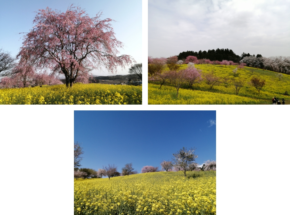 小宅古墳群は、35基の古墳からなり、そのうち17基が栃木県指定の文化財になっています。3月下旬から4月中旬頃まで、菜の花と種類の異なる約200本の桜を一緒に楽しむことができます。